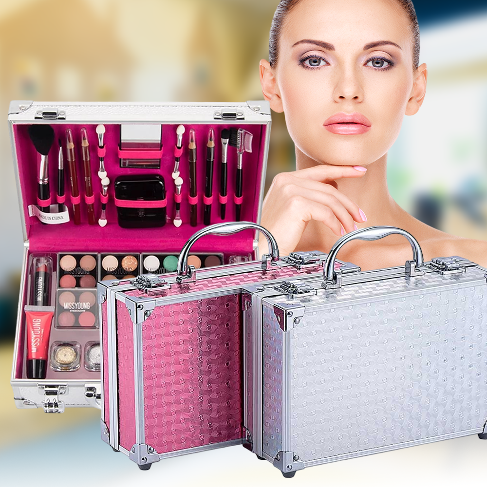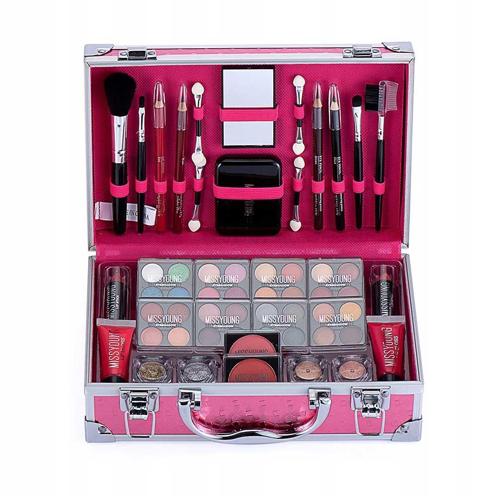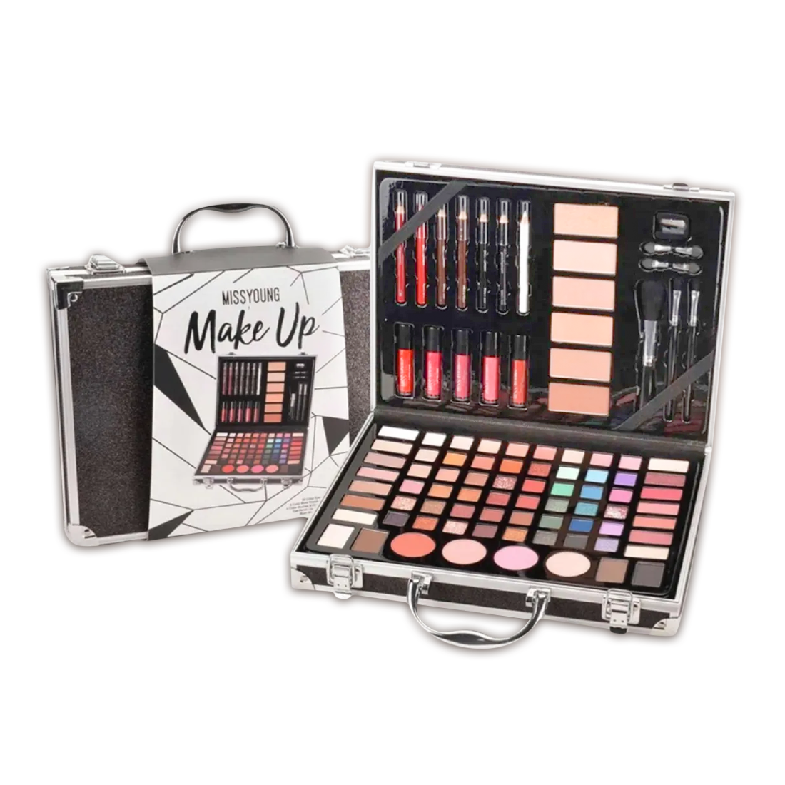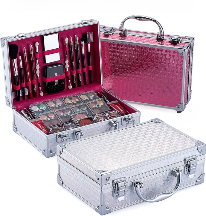 Набір містить тіні, рум'яна, помади, блиски та інші засоби для створення макіяжу. Передбачено вбудоване дзеркало та тримачі для пензлів. Компактне рішення для зберігання та транспортування косметики.